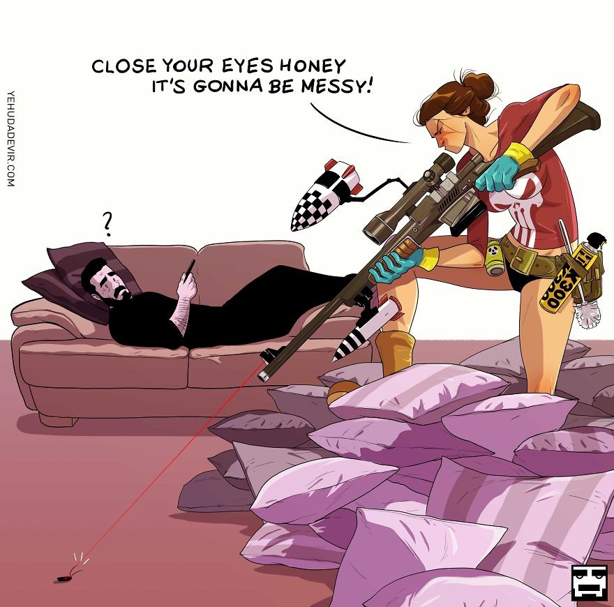 His wife provides him with all the inspiration he needs to create such illustrations, whether it is valentines day or destroying kitchen while cooking cereal, she is really adorable and we can see that Yehuda loves her to no end through these illustrations made by him.