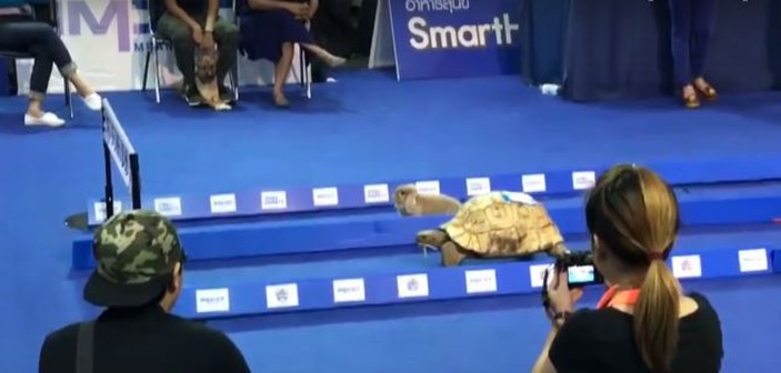 A hare and a tortoise took part in a real-life race at a recently organized pet show in Thailand. The race, inspired by ‘The Story of the Tortoise and the Hare’ by Ancient Greek storyteller Aesop, ended with the tortoise winning the race while the hare stood still mid-way. Footage from the fair shows numerous people cheering the racing pets.