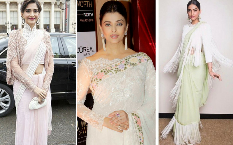 These blouses will offer you a wide variety to choose from, you can go for a simple off shoulder blouse of for a tulle kinda blouse like Sonam Kapoor or for a lace blouse with uncut edges and a lot more.