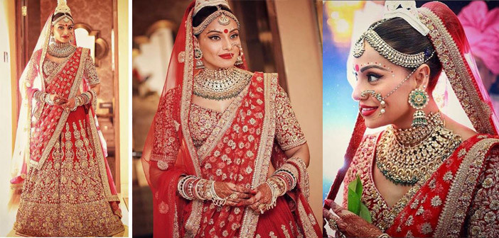 The word “Indian Bride” gives us a a very unique sketch. All we can think of is a sweet and charming young and sky woman with designs of deep crimson henna on her arms and feet, pretty trinkets, kohl rimmed eyes, heavy jewellery, glowing make-up, bridal finery and of course dressed in the most gorgeous lehengas! So, to make your life easier, we’ve picked the most stunning designs from the latest collections of our favourite designers. You might find it hard to choose just one.