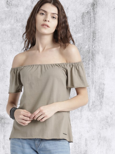 8. Roadster Women Beige Solid Bardot Top