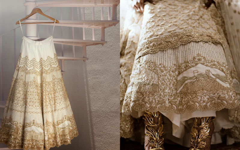 She told that her groom chose white and gold as the theme for their wedding trousseau so she spent hours with the karigars who were stitching the little milestones of their love story.