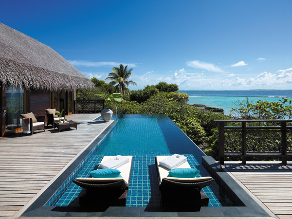 The Asian-minimalist design blends beautifully into the landscapes, and the sleek guest rooms are equally sophisticated, with tropical wood floors, shantung-silk wall panels and sprawling marble baths. Families and couples on a romantic getaway happily co-exist here, while golfers can play the challenging, award-winning course, which has a unique 19 holes. Active types can partake in sailing, sea kayaking and snorkeling.