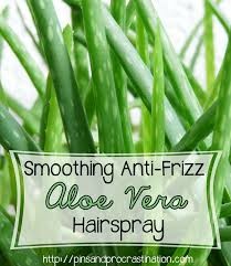 Anti Frizz: Aloe smoothens the hair taking away the frizz and without damaging that is caused by styling products. Mix aloe gel with water and add to a spray bottle and your aloe hair spray is ready!!