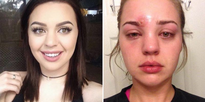 Wright felt what she “thought was a giant under a skin pimple” next to her eye brows and she popped it like she did with her pimples and in the very next second her face started to swell and she felt an excruciating pain.