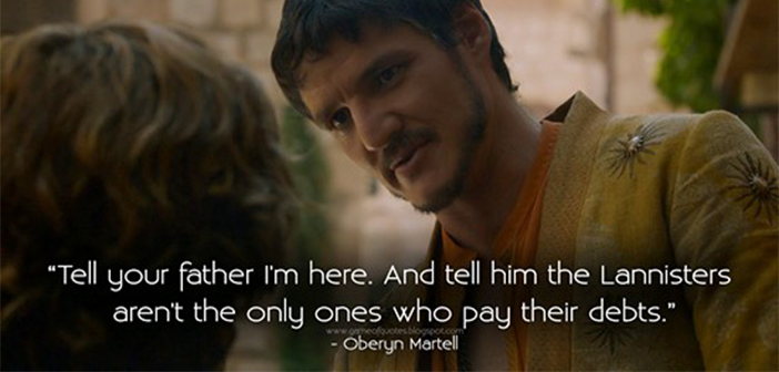 11. Tell your father I’m here. Tell him the Lannisters aren’t the only ones who pay their debts. -Oberyn Martell