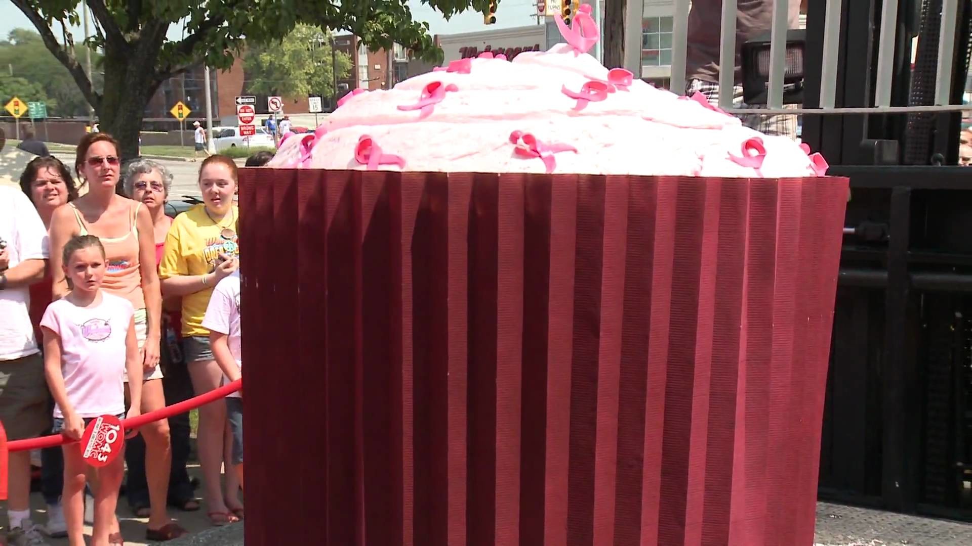 Slices of the cupcake were served in exchange for donations to the Susan G. Komen for the Cure breast cancer organization.