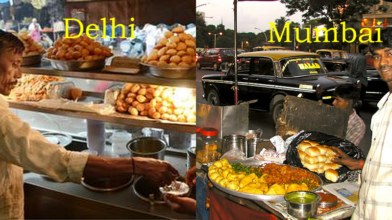 In both the cities, food is like a religion, necessity, joy and an addiction, enjoyed as one of the most important aspects of everyday life. Street food in Delhi is Papri Chaat, Golgappas and Aloo Tikkis. Whereas in Mumbai, street food is more of Pani Puri, Vada Pao and Bhel Puri.