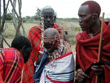 Spitting blessings are quite a sight at Massai wedding in Kenya. Here father spits on her daughter’s head and breasts for a happy married life before she leaves the villlage with the groom.