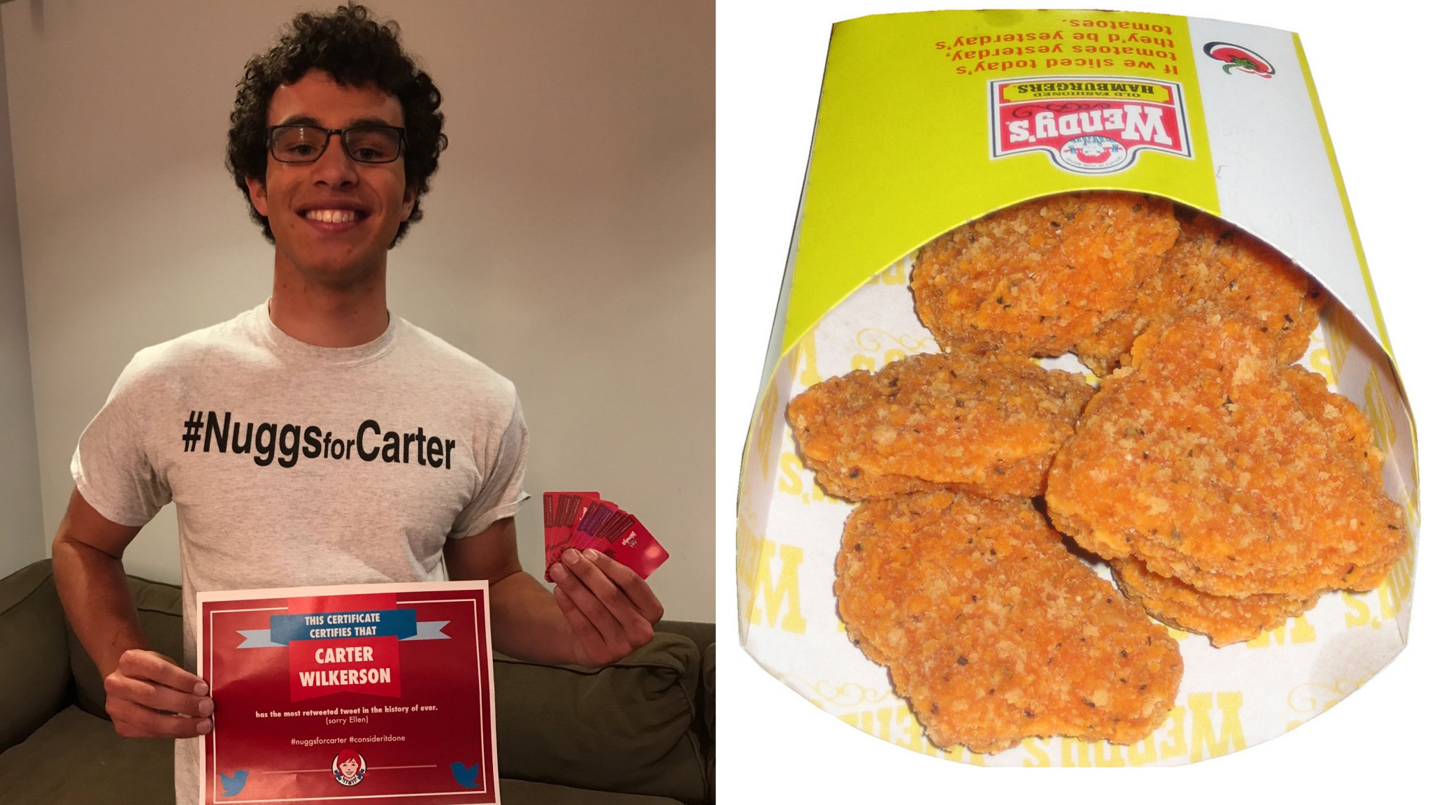 On Tuesday, Wilkerson broke the retweet record, according to Guinness World Records. His tweet was shared more than 3,470,000 times. Previously, the most shared tweet was Ellen DeGeneres’ Oscars selfie, which Guinness said had 3,430,249 retweets as of Tuesday.With Wilkerson’s out of the blue social stardom, he started a website, #NuggsforCarter, which sells T-shirts for all chicken nugget fans. According to the website, all proceeds from the merchandise sales will be donated to the Dave Thomas Foundation for Adoption. And even though Wilkerson didn’t hit the 18 million mark, Wendy’s decided to go ahead and give him the free nuggets for a year. Wendy’s also pledged to give $100,000 to the Dave Thomas Foundation for Adoption.