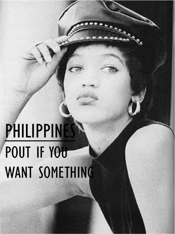Since the use of index finger is crime in Philippines, so what do you do if you genuinely need to point to something? Why, you use yourlips of course! You need to pout them as if you are making a kissy-face and do so in the direction of the thing that requires the attention of the conversation.