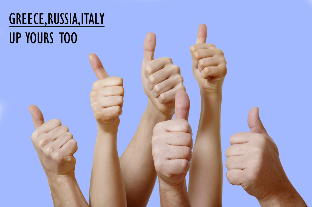 While Western culture has become used to the thumbs-up as a positive, informal signal, generally indicating a job well done there are cultures where a thumbs-up may land you in trouble. In most of Latin America and West Africa, as well as Greece, Russia, Sardinia and the south of Italy, the thumbs-up basically means the same as the middle finger.