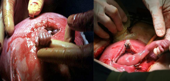 This is Incredible! A 21-weeks old unborn baby named Samuel Alexander Armas was operated in his mother’s womb by surgeon Joseph Bruner. When Dr. Bruner completed his surgery on Samuel, the little baby reached his tiny, but fully developed hand through the incision and firmly grasped his surgeon’s finger as if thanking the doctor for the gift of life.