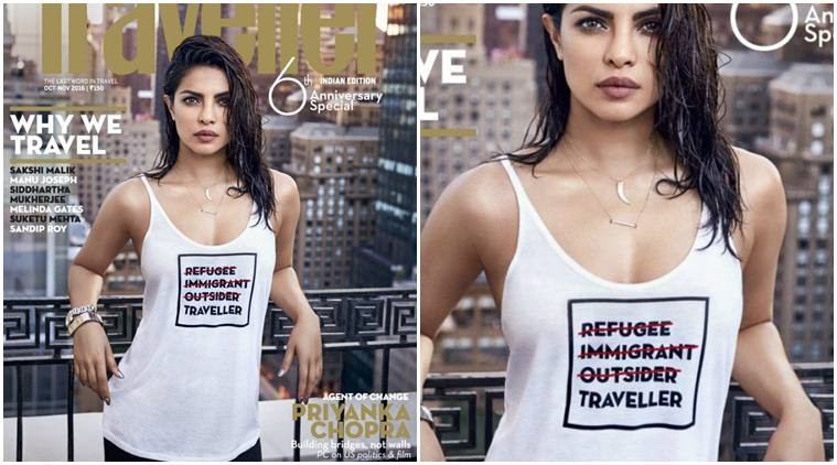 Actress Priyanka Chopra has been slammed for her cover on travel magazine ‘Conde Nast Traveller’. She can be seen wearing a T-shirt with a quote that suggests she is not a refugee, immigrant or an outsider but a traveller. The quote has been deemed “insensitive” towards refugees and immigrants and Priyanka has been criticized for “showing off her privileges”.