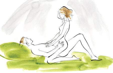 In this position you lean forward and put your hands on his chest, or lean back with your hands on his knees, which puts more pressure on your G-Spot.