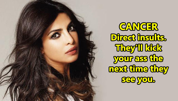 CANCER: Direct insults. They’ll kick your ass the next time they see you.