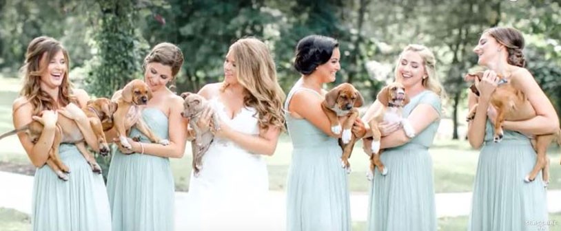 The liter of boxer-coonhounds are sisters and named after the five first ladies of our country. The bride, Sarah Crain and her husband Mat works at the Pennsylvania shelter where these cuties were brought at just under a week old. The couple has a huge passion for rescue dogs and they wanted to incorporate their love for them on their big day.