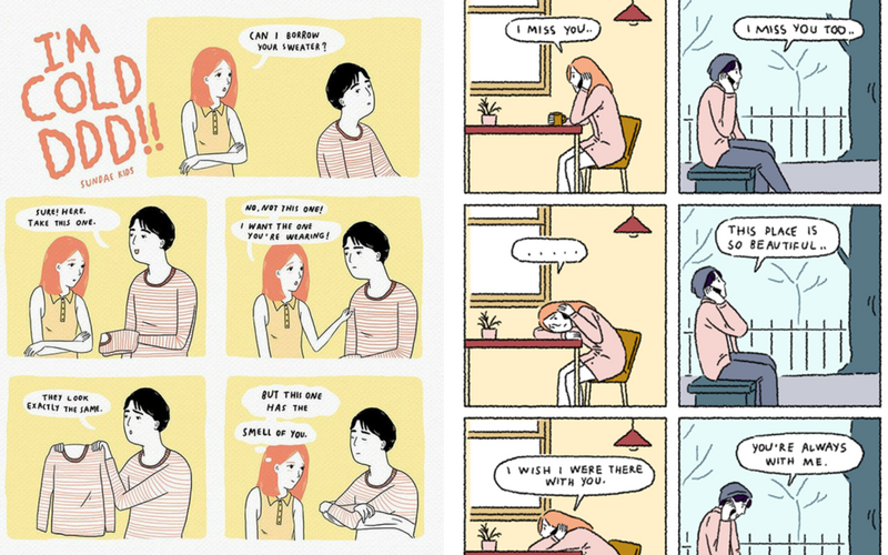 Bangkok-based illustrator Pratchaya Mahapauraya of Sundae Kids illustrates sweet comics about love that tug at your heart strings. They are a perfect description of how to survive a long distance relationship.